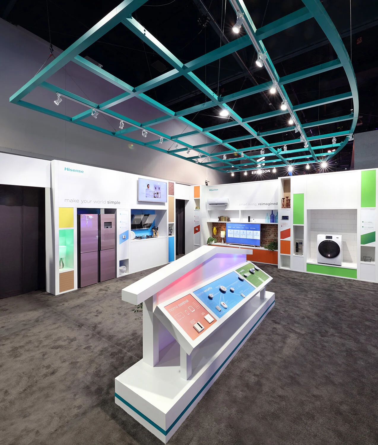 SKOLNICK collaborated with the multinational consumer technology manufacturer, Hisense, to design the exhibits and graphics for their 9,600 square foot booth at the 2017 Consumer Electronics Show in Las Vegas. The exhibit showcased their latest innovative products, displaying twenty-nine 4K televisions ranging in size from 55” to 100,” two 8K televisions, the latest short-throw Lasercast projector television, and a suite of smart home products and solutions.